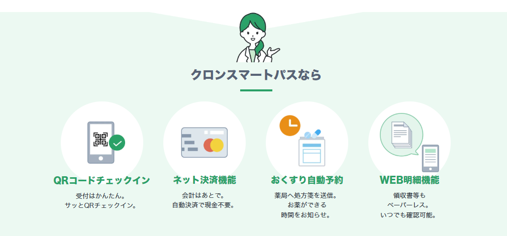 当院では患者様の通院のご負担を減らし、スマートに通院いただくためのサービス「クロンスマートパス」の導入をしました。